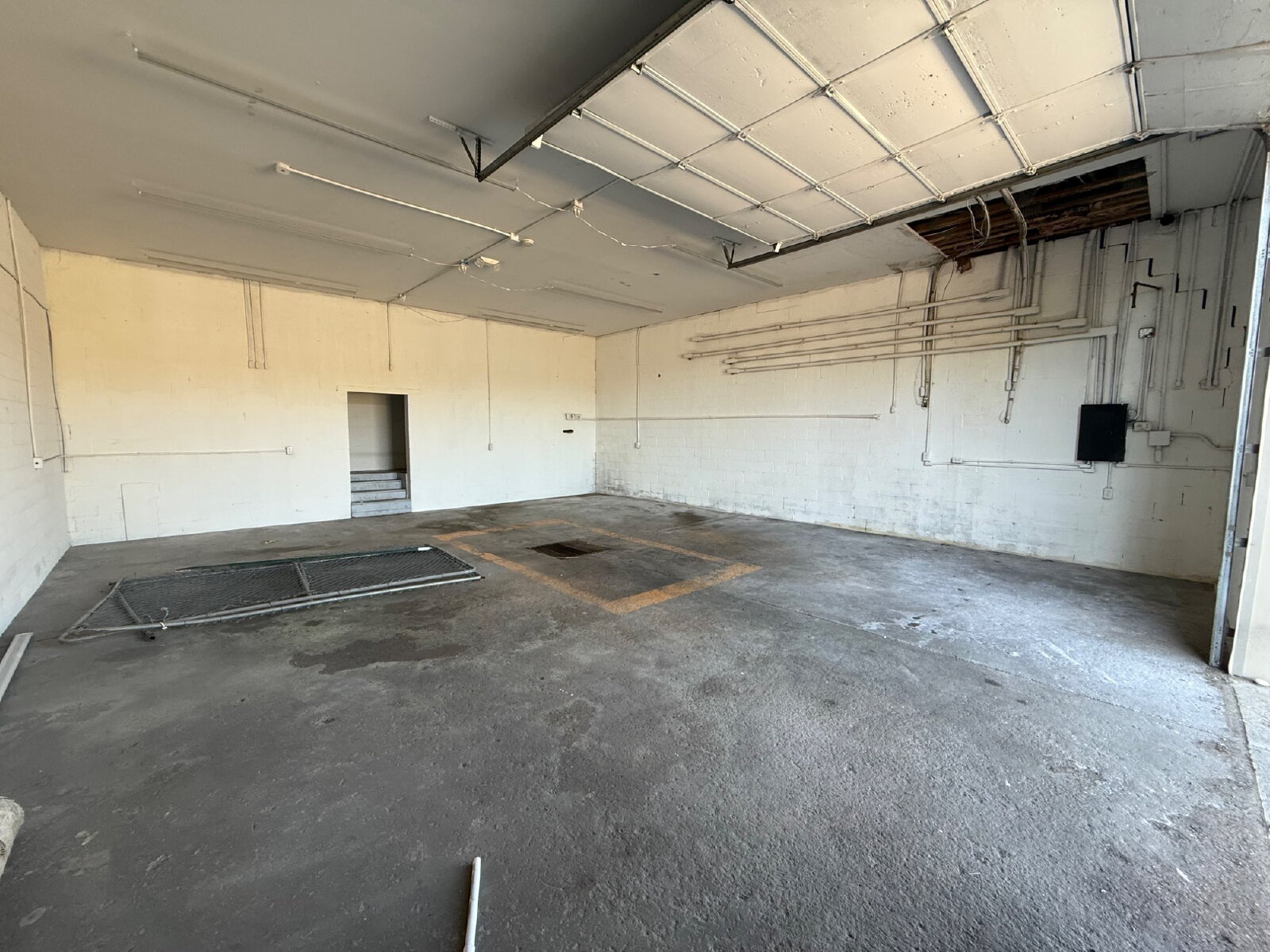 Open Commercial Space ! 1100 sqt ft with tall ceiling , one bathroom tall garage door ,